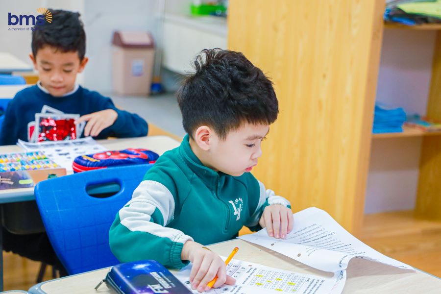 Khóa ôn là nơi giúp các con rèn luyện kỹ năng thi cử qua bộ đề ôn luyện được thiết kế bởi ban chuyên môn Nhà trường nhằm giúp các con ôn luyện kiến thức, sẵn sàng chinh phục những suất học bổng lên tới 50% học phí và ghi danh vào lớp song ngữ Tài năng (T) tại BMS.