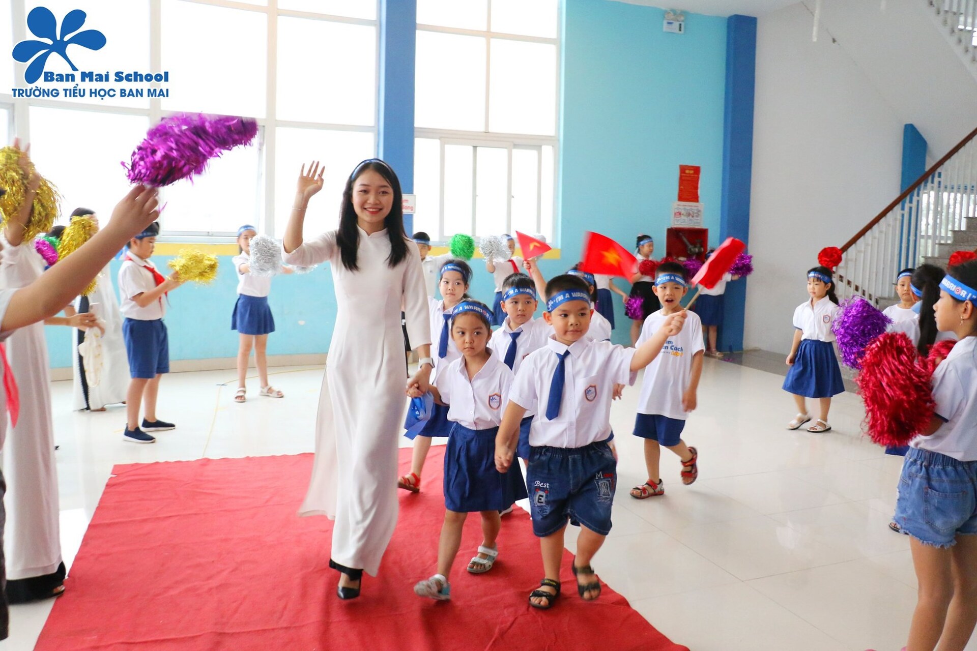 Được các anh chị trong trường chào đón dọc các hành lang dẫn lên Trung tâm tổ chức sự kiện của nhà trường, ai cũng tít mắt cười rạng rỡ, vẫy tay, vẫy cờ chào tưng bừng. Ai cũng hân hoan vì mình chính thức trở thành một chiến binh tại Ban Mai trong năm học này, với dải lụa xanh buộc trên trán: “I’m a Warrior”.