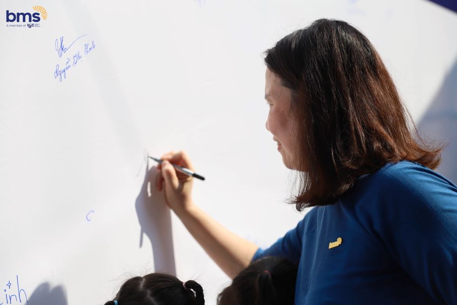 Hoạt động này không chỉ mang lại niềm vui và sự hứng khởi cho các em học sinh mà còn tạo ra mối liên kết mạnh mẽ giữa nhà trường và gia đình. Thông qua những dòng chữ trên backdrop, BMS mong muốn gửi gắm thông điệp rằng: mỗi người đều có vai trò quan trọng và cần chung tay trong việc bảo vệ trái đất.