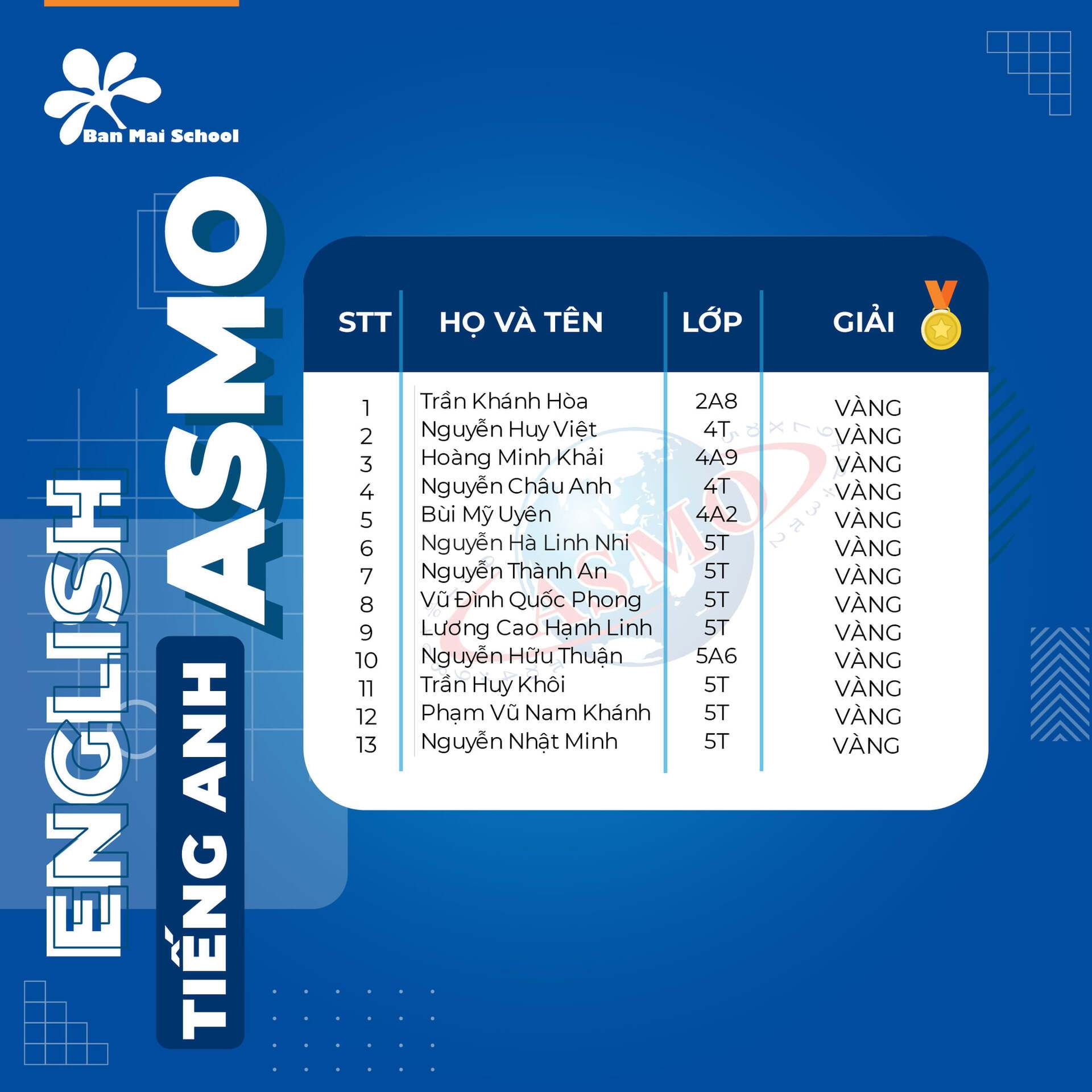 Chúc cho các BMSers sẽ tiếp tục tỏa sáng, khẳng định năng lực và thương hiệu trí tuệ Ban Mai ở những vòng thi tiếp theo.