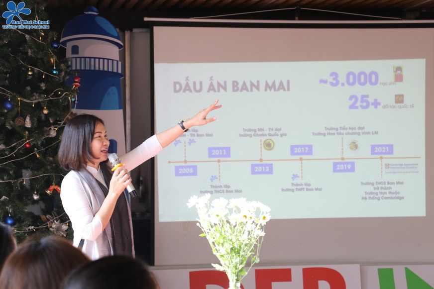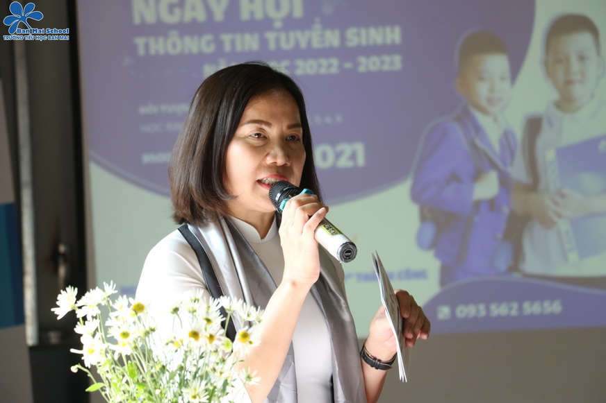 Cô Nguyễn Thị Thanh Nương – Hiệu trưởng nhà trường chia sẻ quan điểm giáo dục của Ban Mai – ngôi trường giáo dục Nhân cách và Trí tuệ, giúp mỗi học sinh trở thành những BMSers có trái tim Việt và trí tuệ toàn cầu.