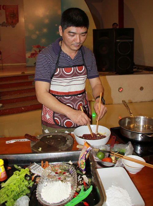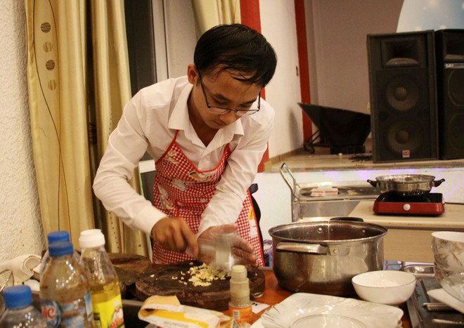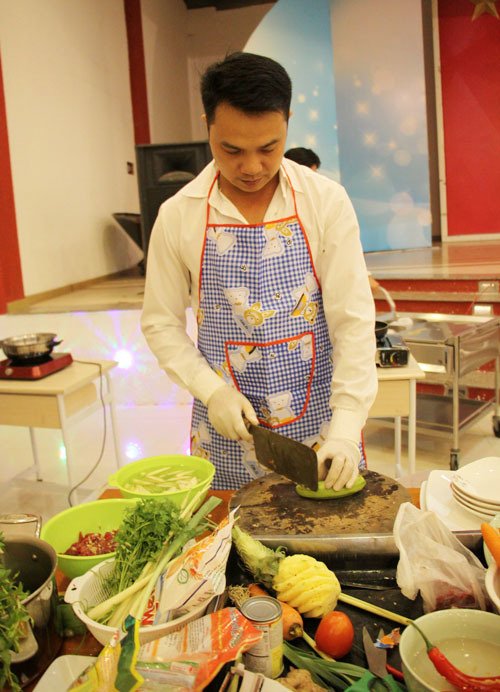 Nấu nướng không phải là sở trường, nhưng thầy giáo Trịnh Phi Lâm rất hào hứng với cuộc đua “vào bếp”. Thầy cho biết, hoạt động này rất ý nghĩa bởi giúp một bộ phận không ít cánh mày râu hiểu được vất vả trong công việc nội trợ.