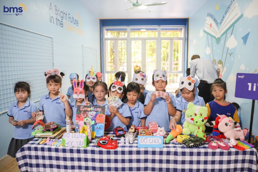 Mỗi học sinh khi đến gian hàng đều mang theo một số tiền nhỏ để bỏ vào hòm quyên góp và có thể chọn một món đồ yêu thích bất kỳ từ gian hàng của lớp. Đây là cách giúp các em có cơ hội giao lưu, chia sẻ với bạn bè mà còn hiểu hơn về tinh thần cộng đồng. Mỗi món đồ được chọn không chỉ mang giá trị vật chất mà còn chứa đựng tinh thần đoàn kết, yêu thương và chia sẻ của tập thể học sinh BMS.