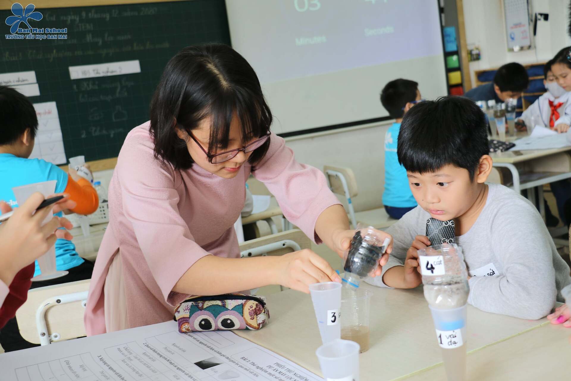 Giờ học này giúp học sinh hình thành năng lực giải quyết vấn đề và sáng tạo thông qua hoạt động thử nghiệm các nguyên vật liệu lọc nước. Phẩm chất trách nhiệm trong việc bảo về nguồn nước đối với mỗi BMSer cũng được rèn luyện qua giờ học STEM này.