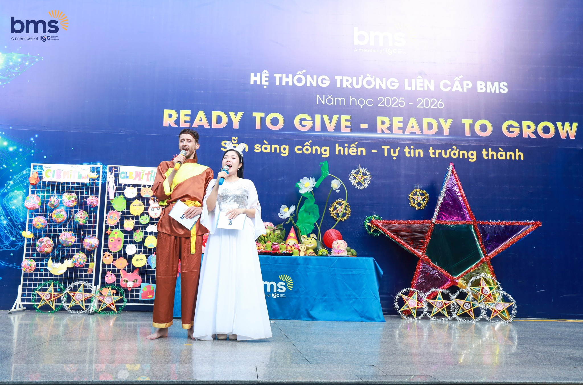 Ngày 3/10 vừa qua, sân trường BMS Hà Nội - Trường Tiểu học Ban Mai bừng sáng trong sắc màu Trung thu rộn rã. Từ sớm, tiếng trống lân vang lên giòn giã, kéo theo những gương mặt rạng rỡ, háo hức của các BMSers. Khắp khuôn viên trường, đèn lồng rực rỡ, mâm ngũ quả được bày biện tinh tế, và những điệu cười trong trẻo đã biến “Vui hội Trăng Rằm” thành một ngày hội ngập tràn năng lượng và yêu thương.